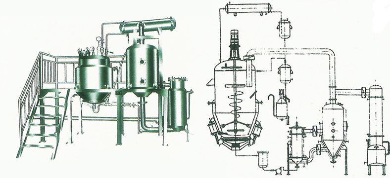 本機(jī)組主要由動(dòng)態(tài)提取罐、蒸發(fā)濃縮器及工藝管道等組成,集動(dòng)態(tài)熱回流提取、真空濃縮、溶劑回收為一體,并能在密閉狀態(tài)下連續(xù)而同步地進(jìn)行提取與濃縮,濃縮時(shí)產(chǎn)生的溶劑蒸汽,經(jīng)冷凝后回流到提取罐,并可用二次蒸汽對(duì)提取中物料再加熱,進(jìn)行熱回流動(dòng)態(tài)提取,適用于中藥、生物、食品、輕工等行業(yè)水和有機(jī)溶劑的常溫及60℃左右的低溫提取,具有投資少、效率高等優(yōu)點(diǎn)。